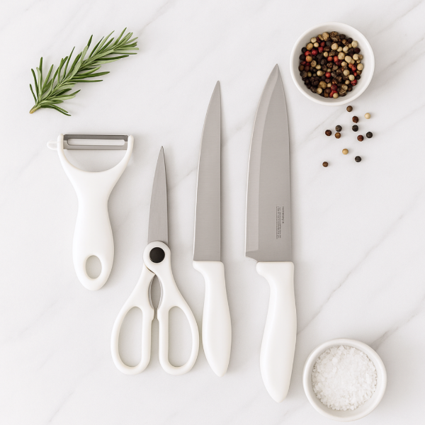 Contiene: 1 cuchilla / 1 cuchillo / 1 pela papa / 1 tijera